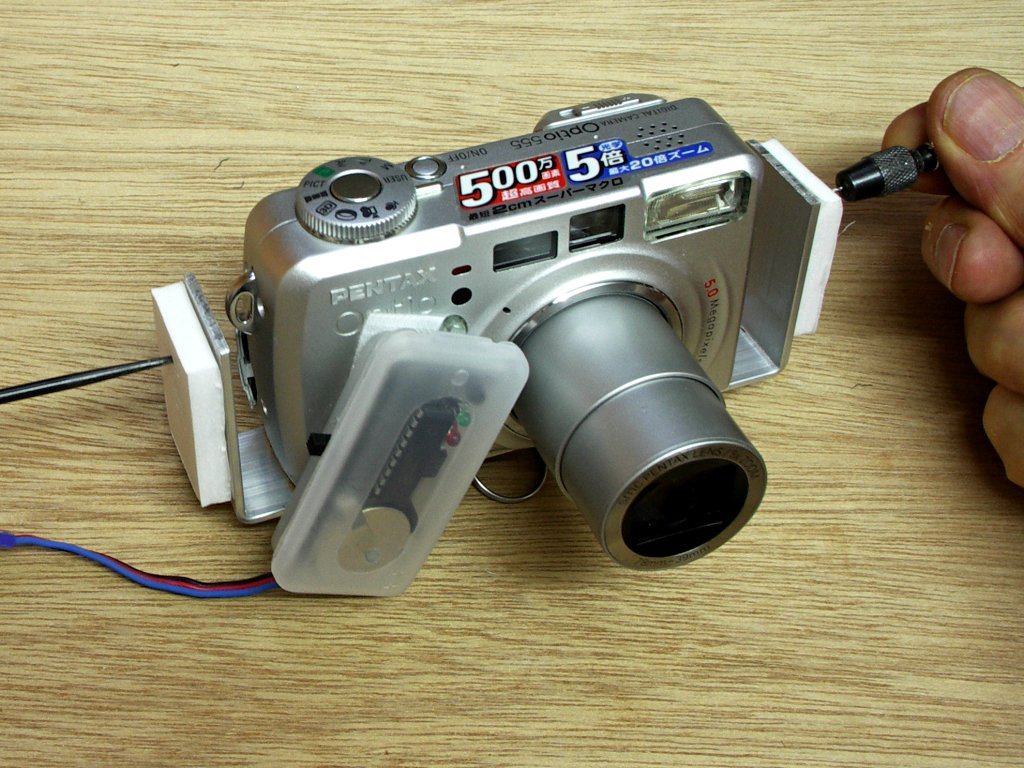 5 Having put marks where you want them remove the camera and drill through with a 3 mm bit.