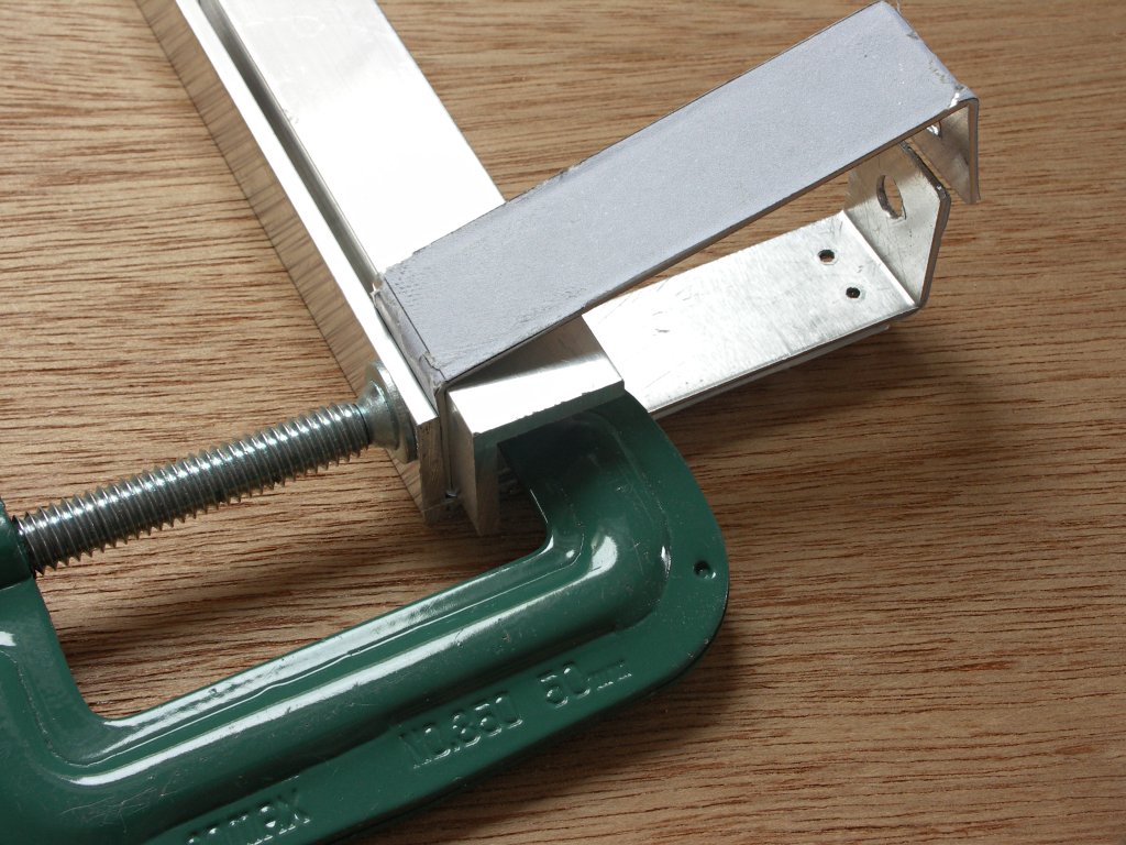 6 Start with the outer bends. The final corner needs something different. As shown clamp the bottom section to a rectangular section or L section of aluminium which has a 20 mm side and bend around that.